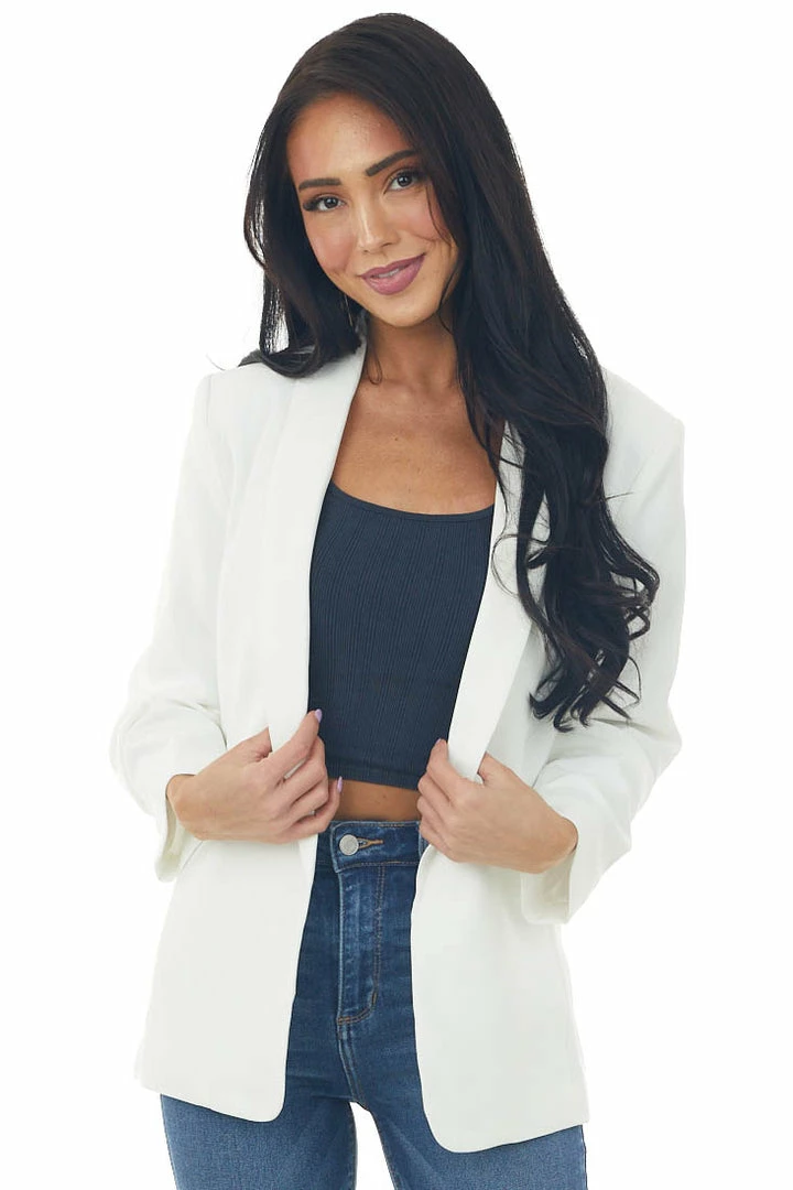 - Off White Gathered Sleeve Blazer with Pockets