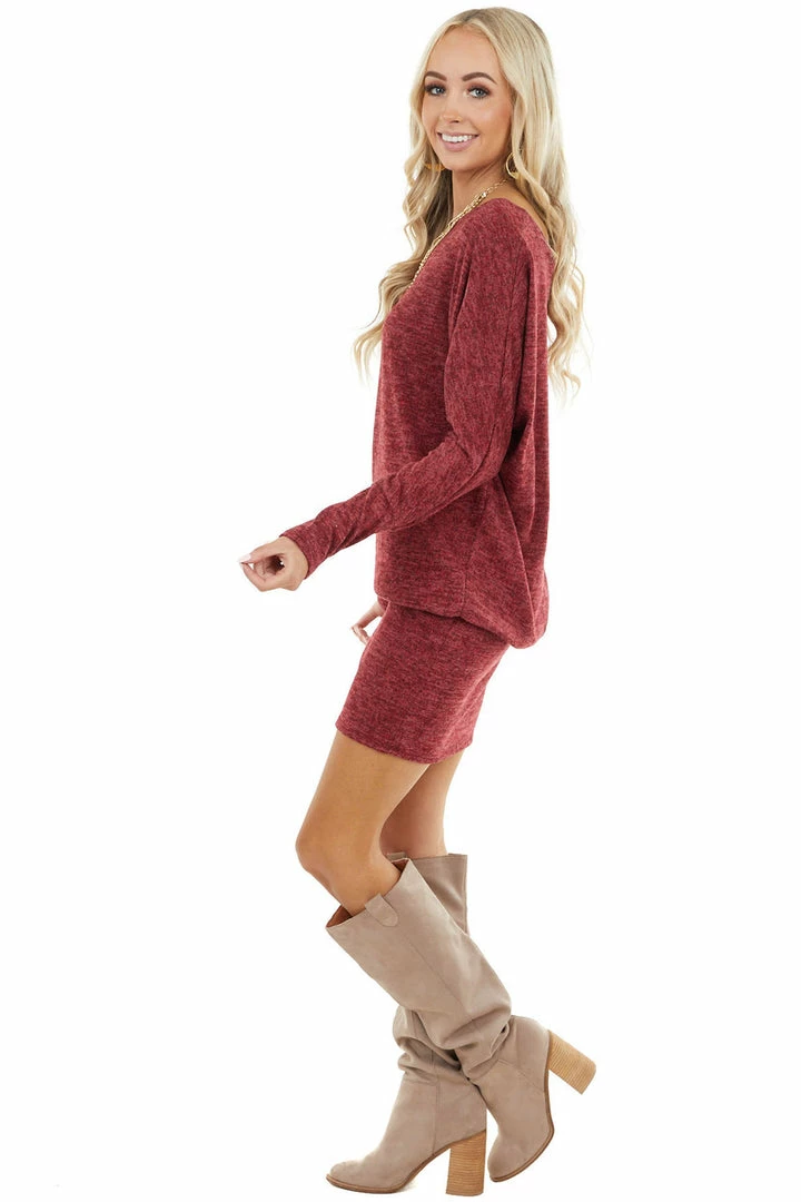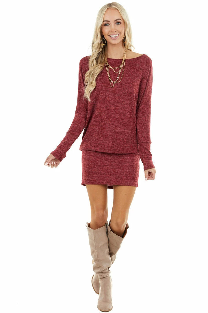 - Maroon Long Sleeve Tunic Dress with Long Banded Hem