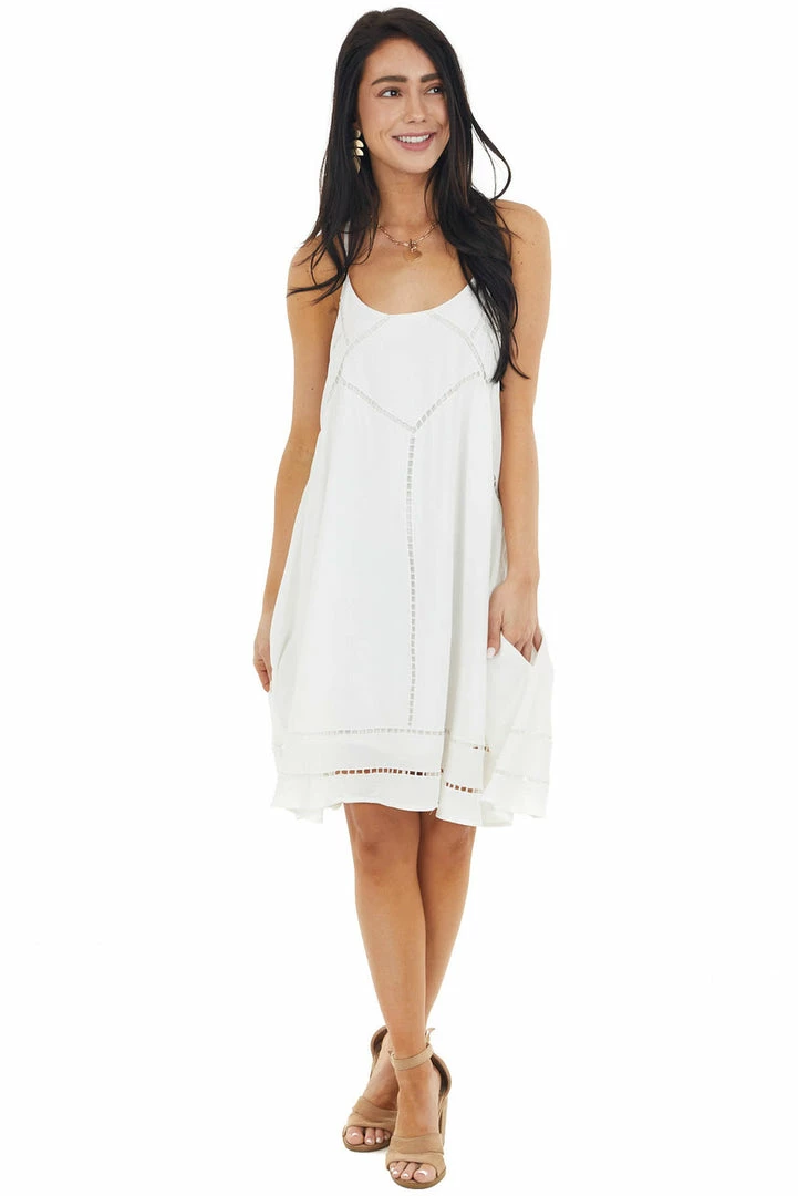 - Ivory Swing Sleeveless Short Dress with Lace Detail