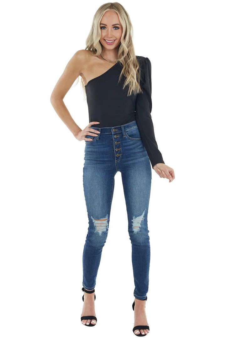 - Black Single Long Sleeve Bodysuit with Puff Shoulder Detail