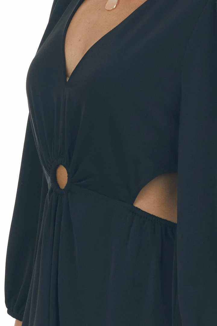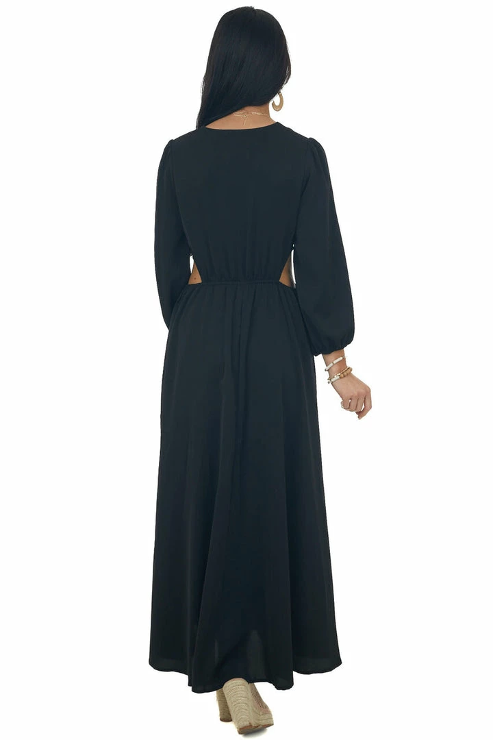 - Black Waist Cut Out Ring Detail Maxi Dress