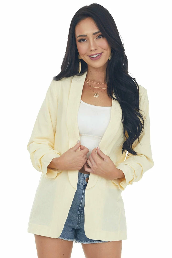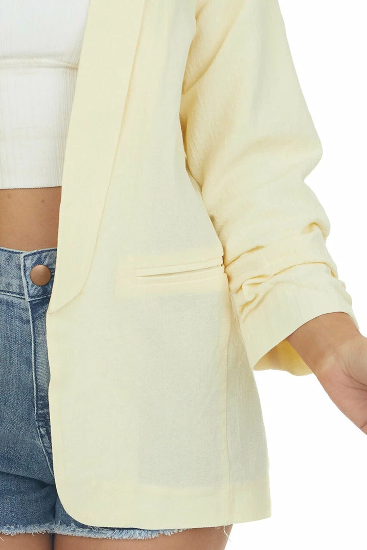 - Buttercream Open Front 3/4 Sleeve Woven Blazer