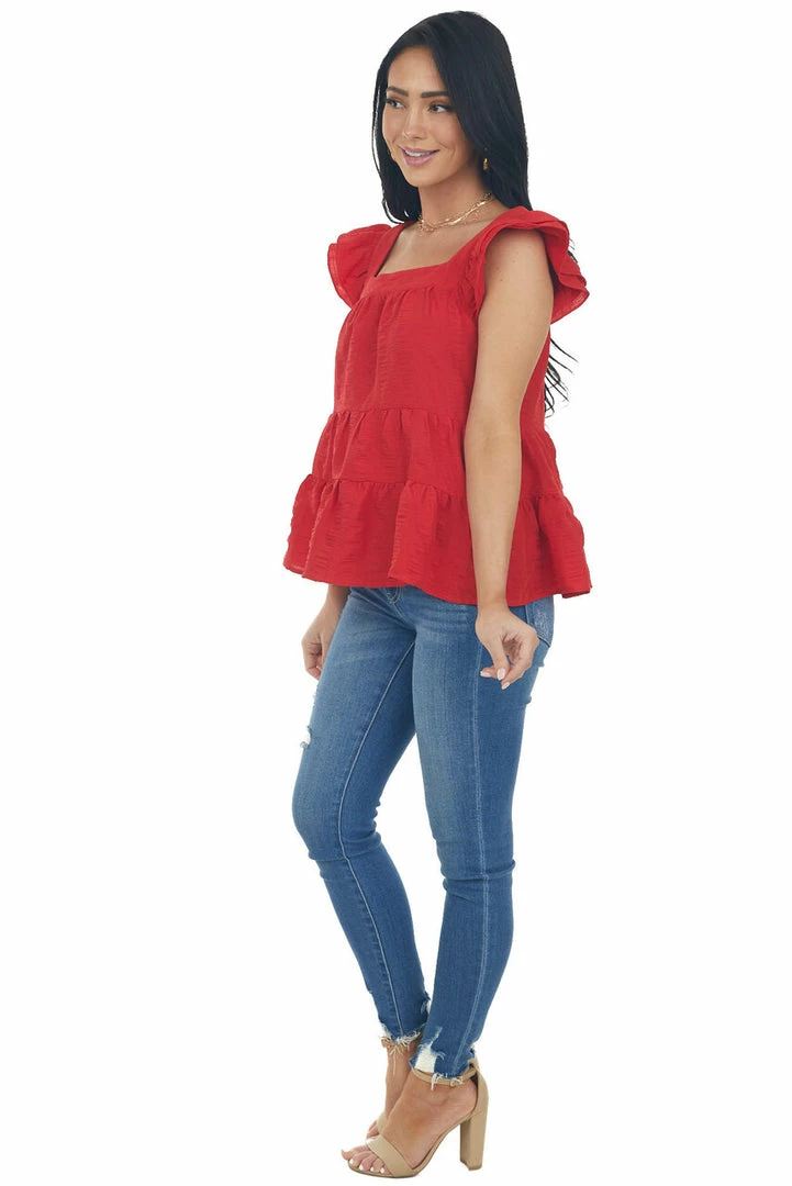 - Cherry Square Neck Ruffle Tiered Blouse
