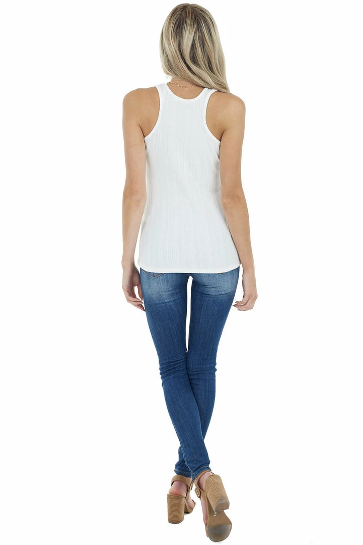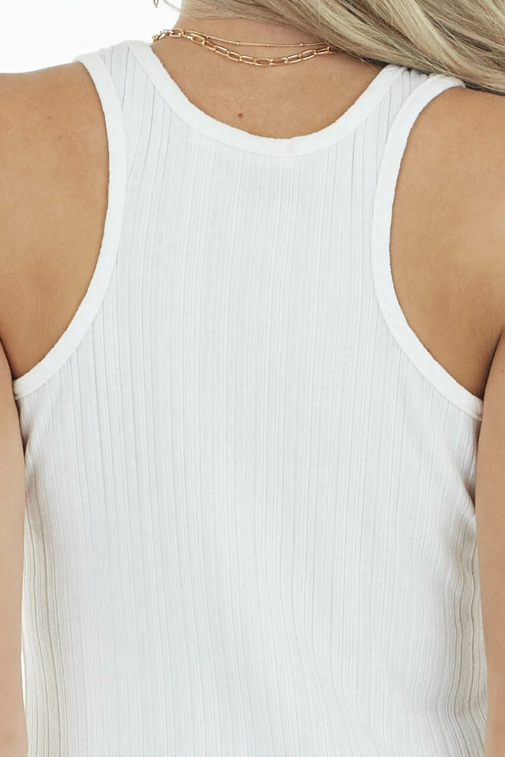 - Cream Sleeveless Ribbed Knit Top with Round Neckline