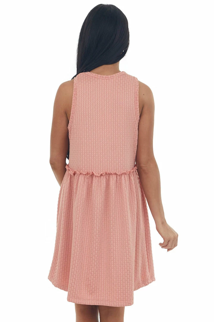 - Hazy Coral Circle Texture Babydoll Knit Dress