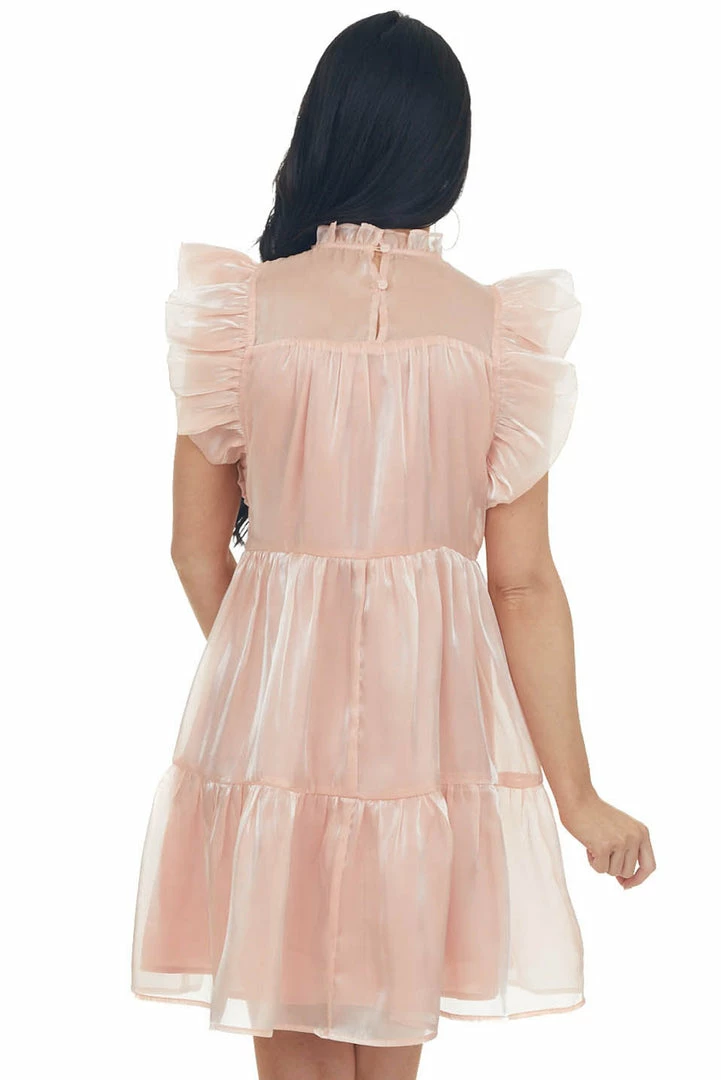 - Peach Glossy Short Dress with Flutter Sleeves