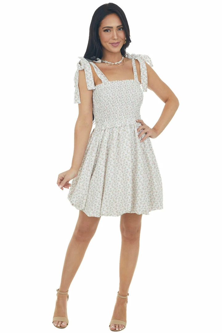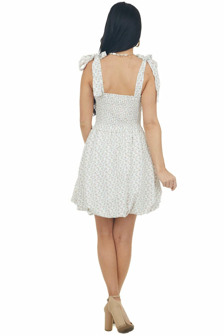 - Terracotta Ditsy Floral Bubble Hem Mini Dress