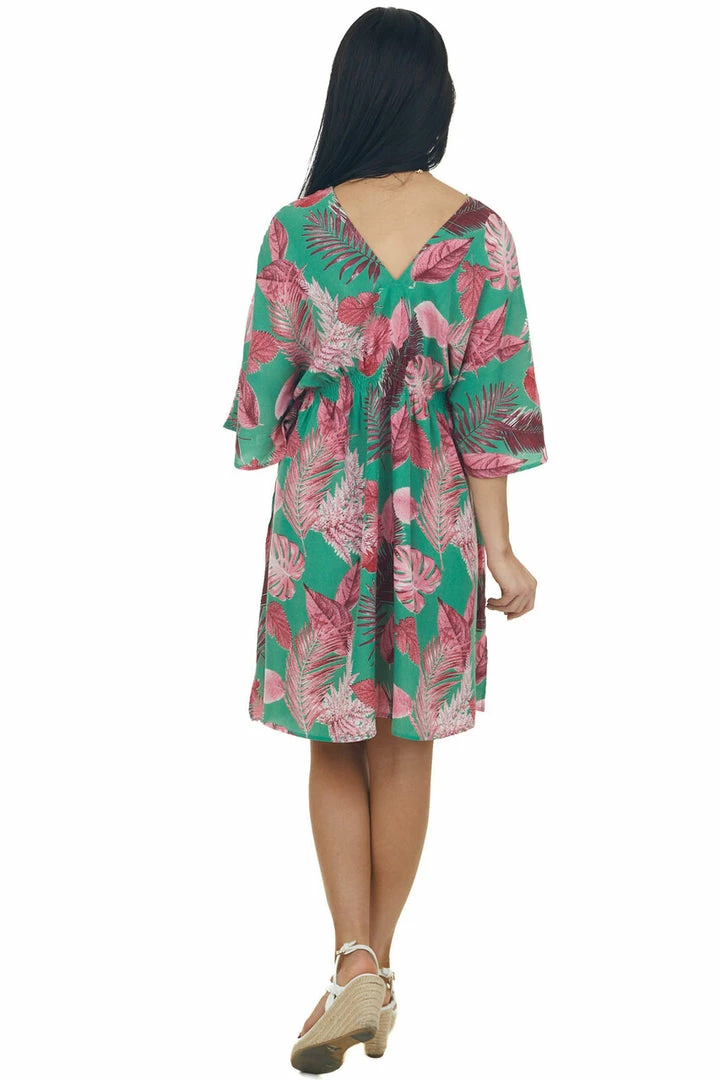 - Jade and Hibiscus Leaf Print Half Sleeve Dress