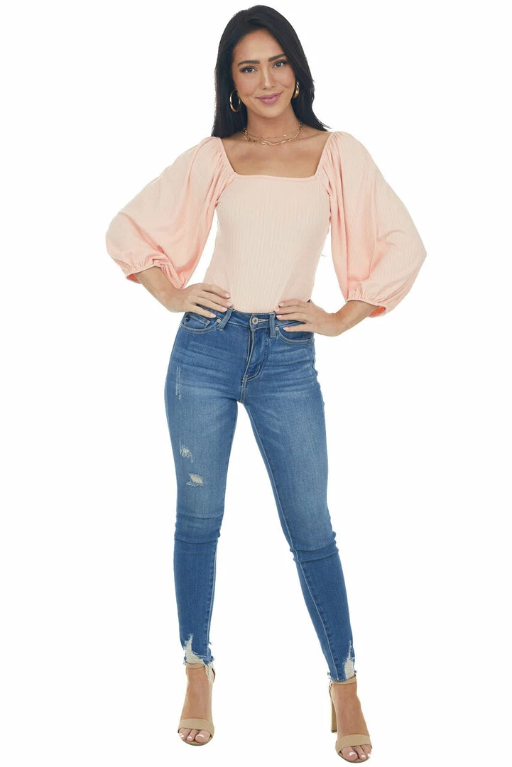 - Pale Salmon Square Neck Bubble Sleeve Bodysuit
