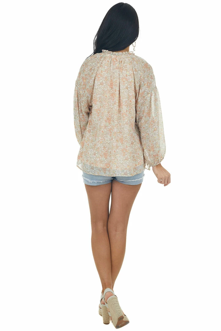 - Peach Floral Print Long Raglan Sleeve Blouse