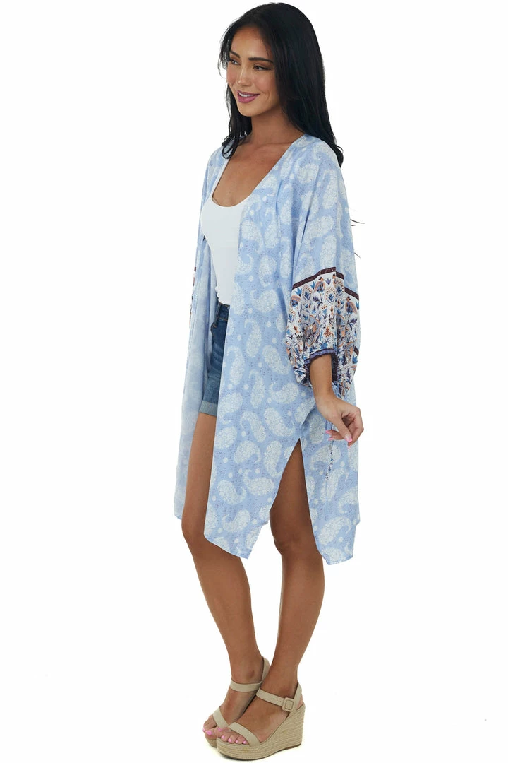 - Periwinkle Floral Paisley 1/2 Sleeve Kimono