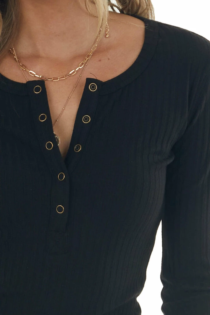 - Black Ribbed Knit Bodysuit with Long Sleeves
