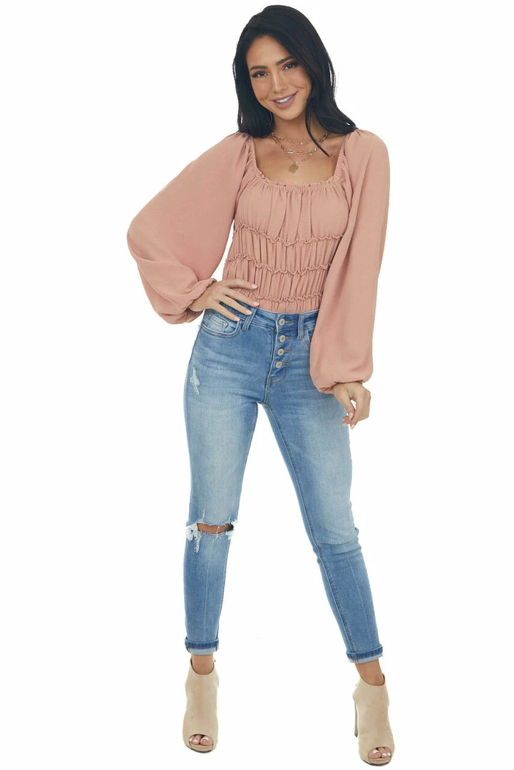 - Ginger Smocked Frill Puff Sleeve Bodysuit