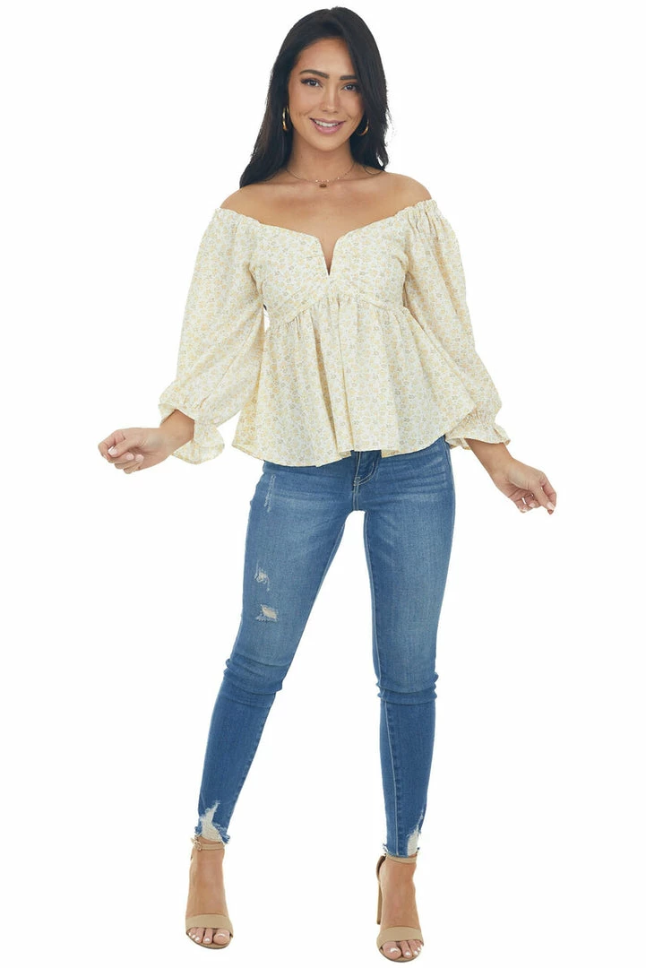- Ditsy floral print in shades of Lemon, Marigold, Jade, and Ash