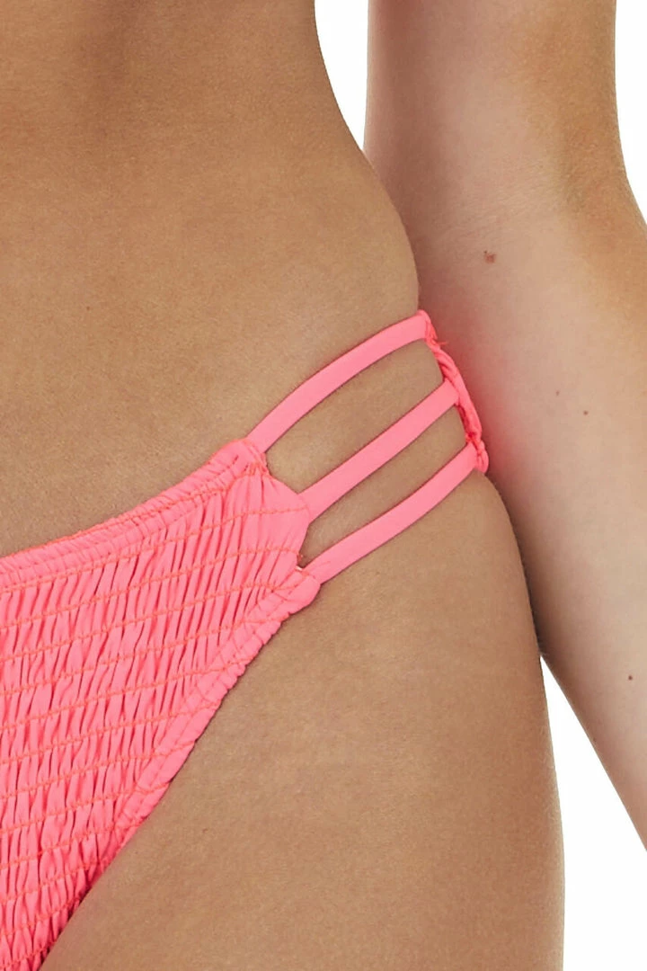 - Neon Pink Bandeau Smocked Bikini Set with Ladder Cut Outs