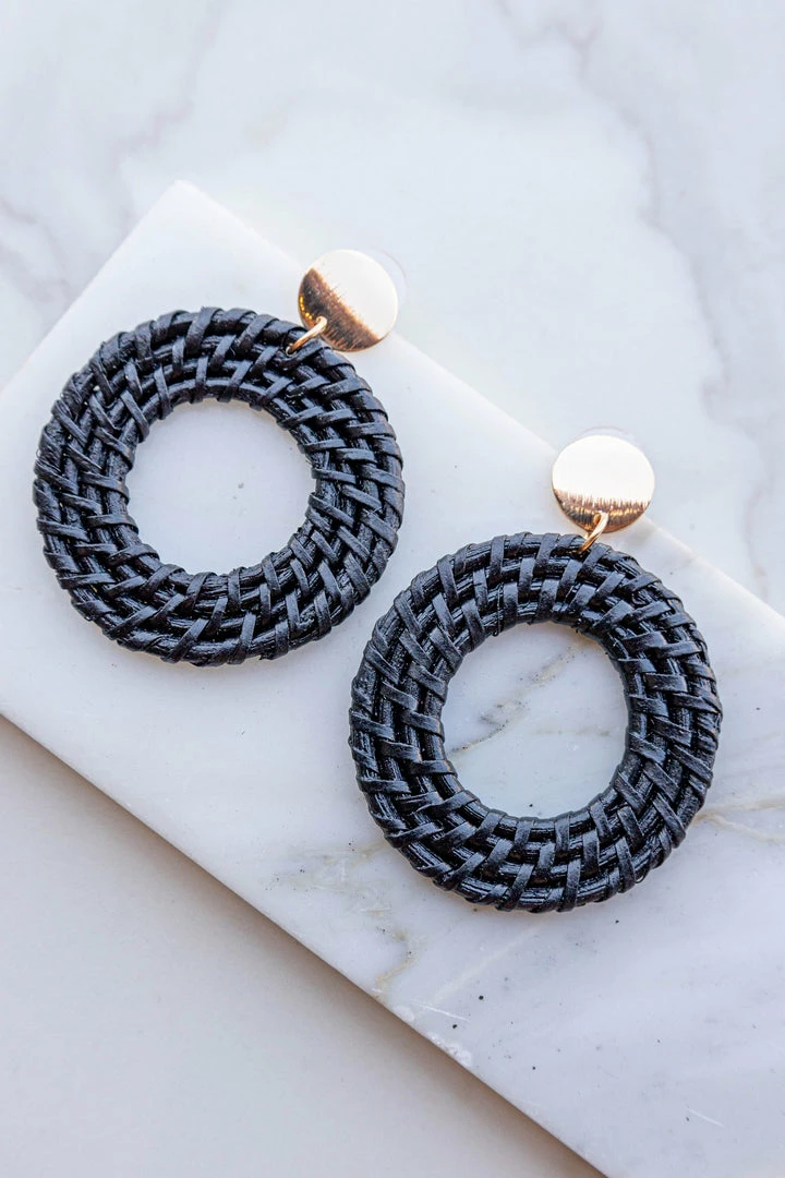 Be the first to review “Fame Accessories Black And Gold Rattan Weave Hoop Earrings” Cancel reply