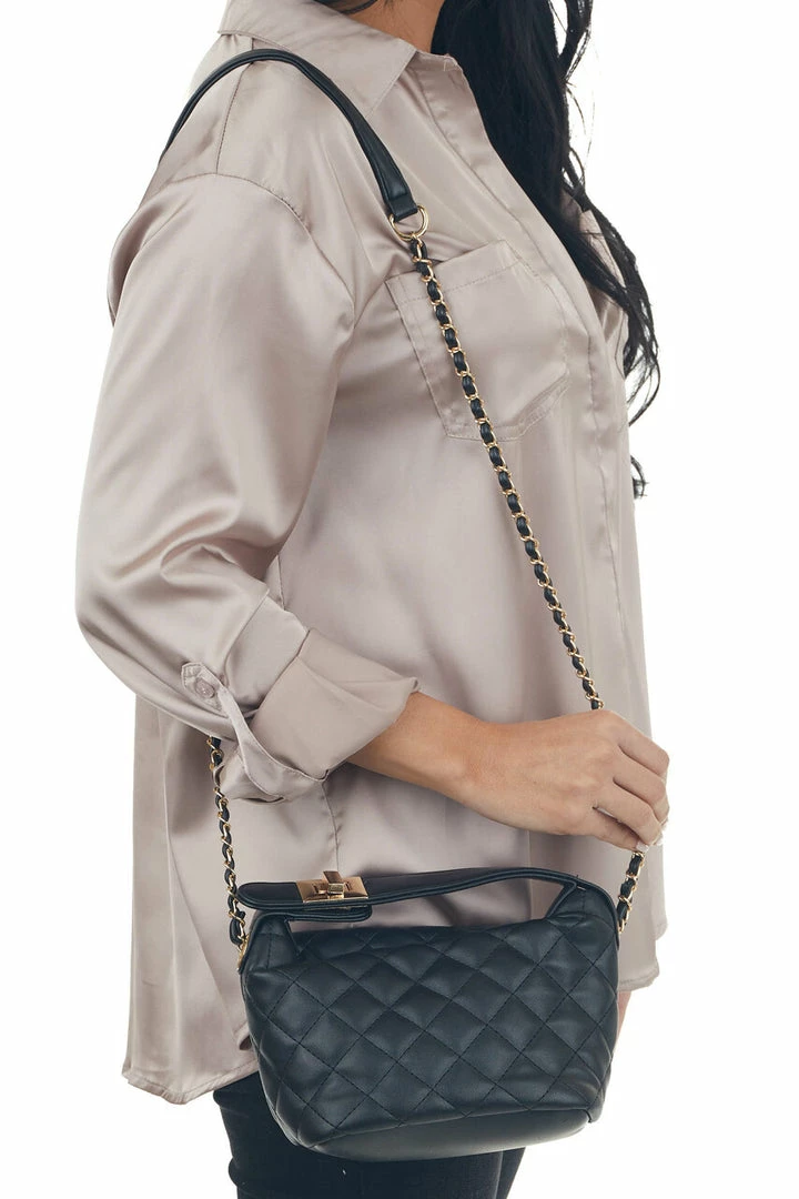 - Gold chain and Black braided shoulder strap