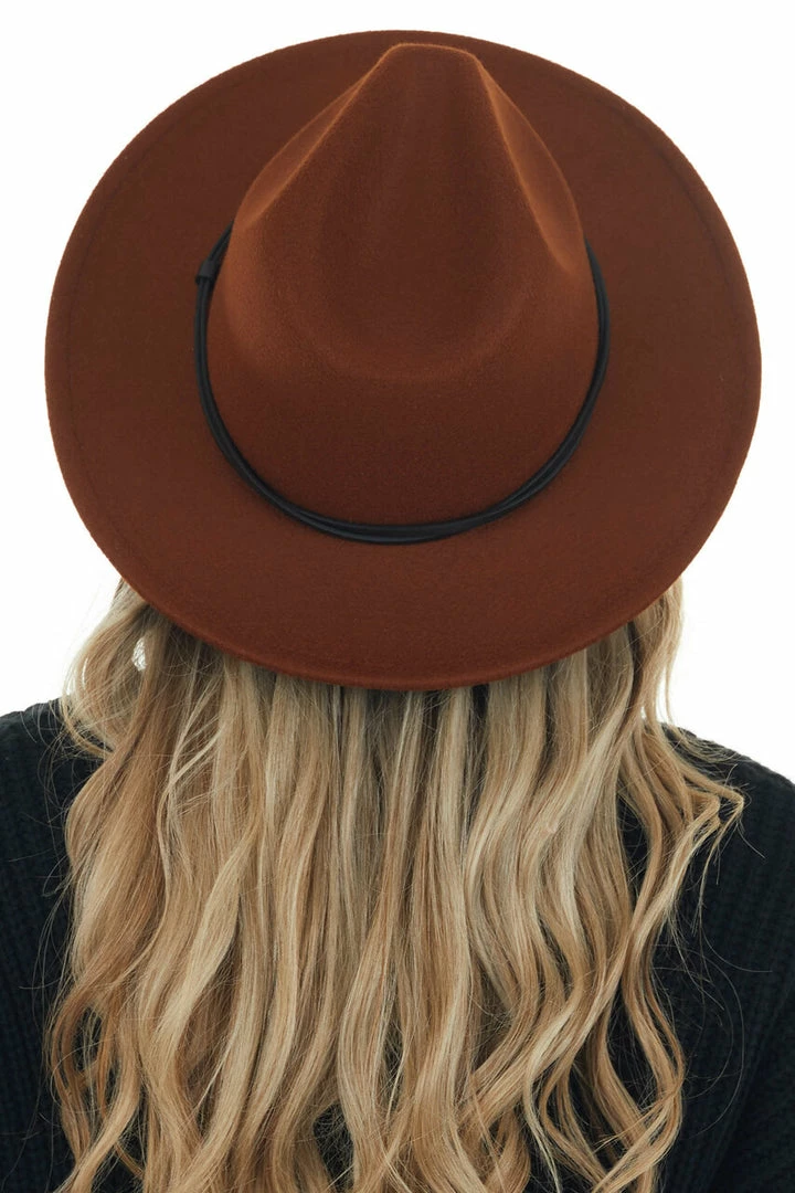 - Cinnamon Felt Wide Brim Hat with Double Band