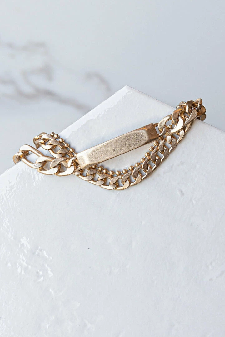 - Gold 3 Layer Flat Chain Bar Detail Bracelet