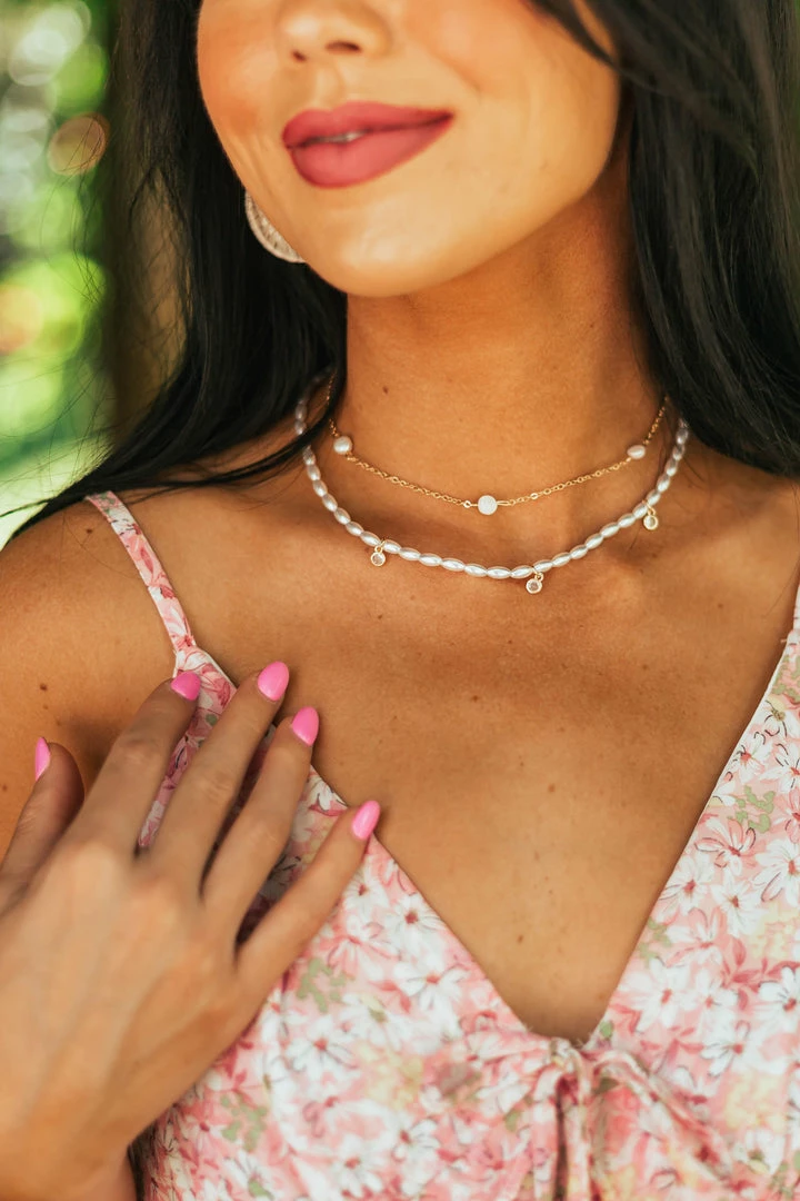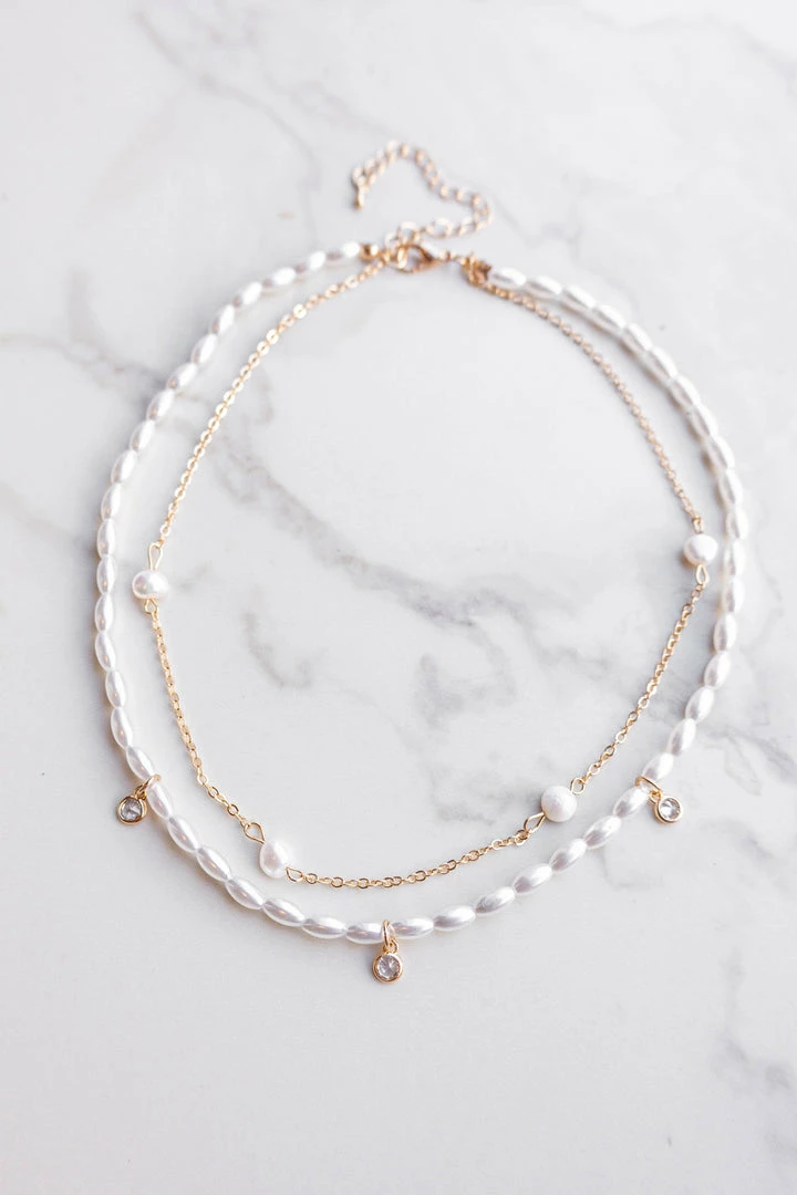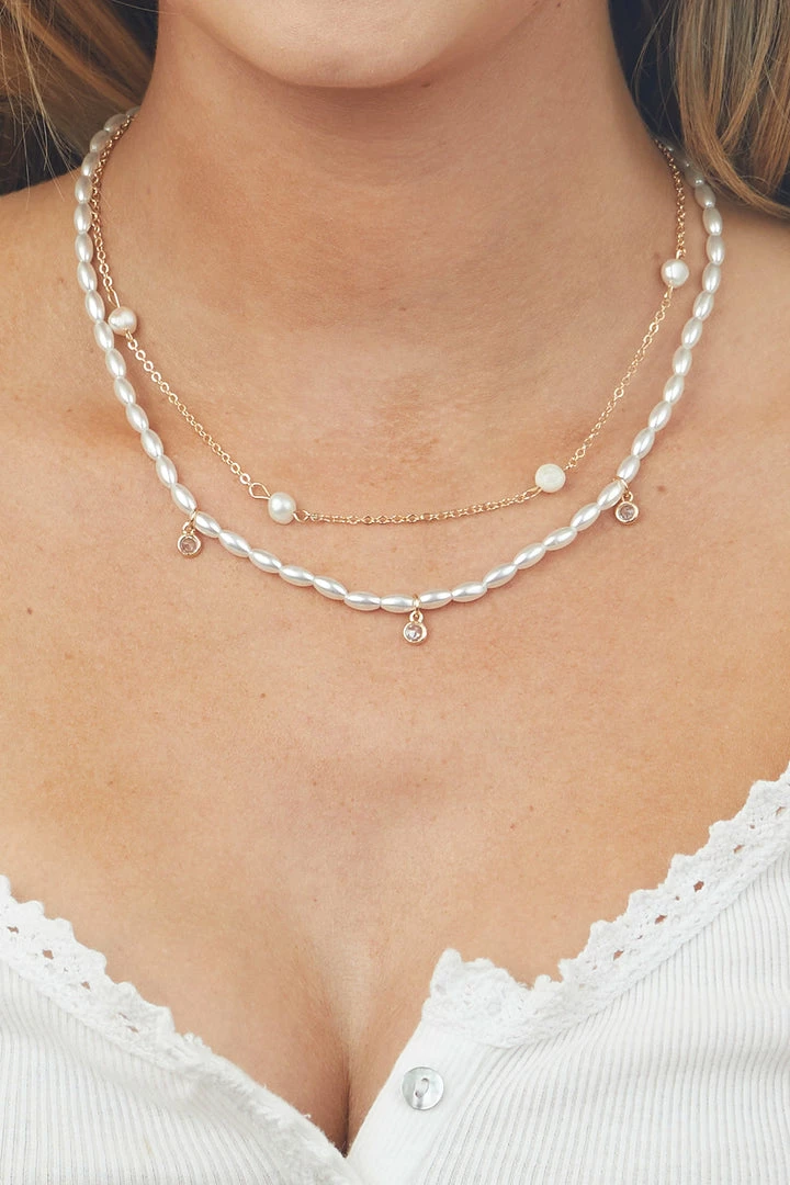 - Gold Faux Pearl Beaded Layered Necklace
