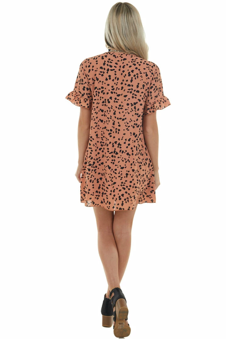 - Pale Spice Cheetah Print V Neck Shift Dress