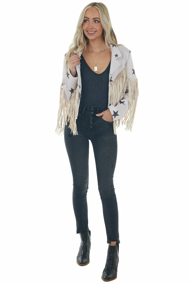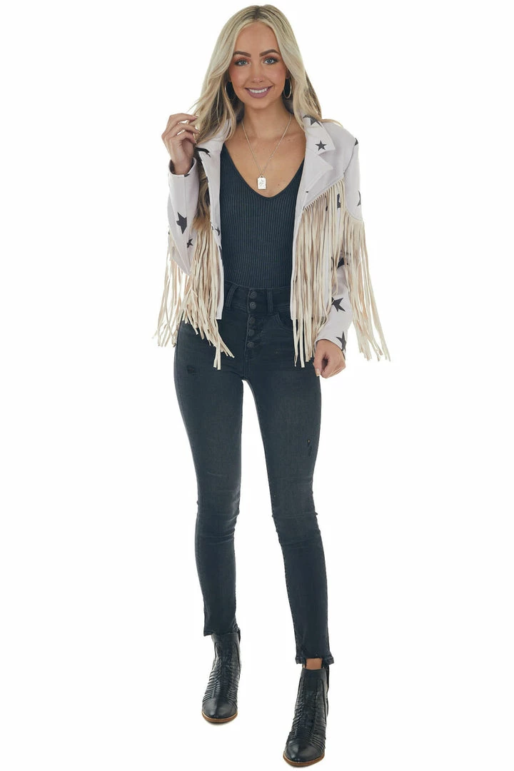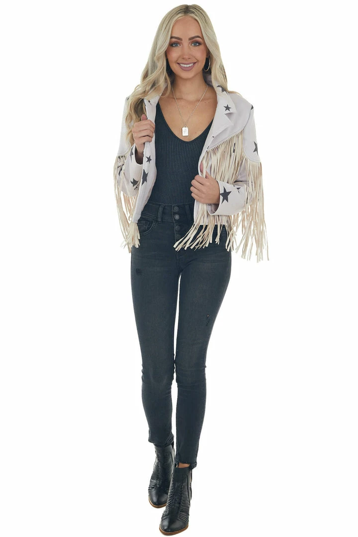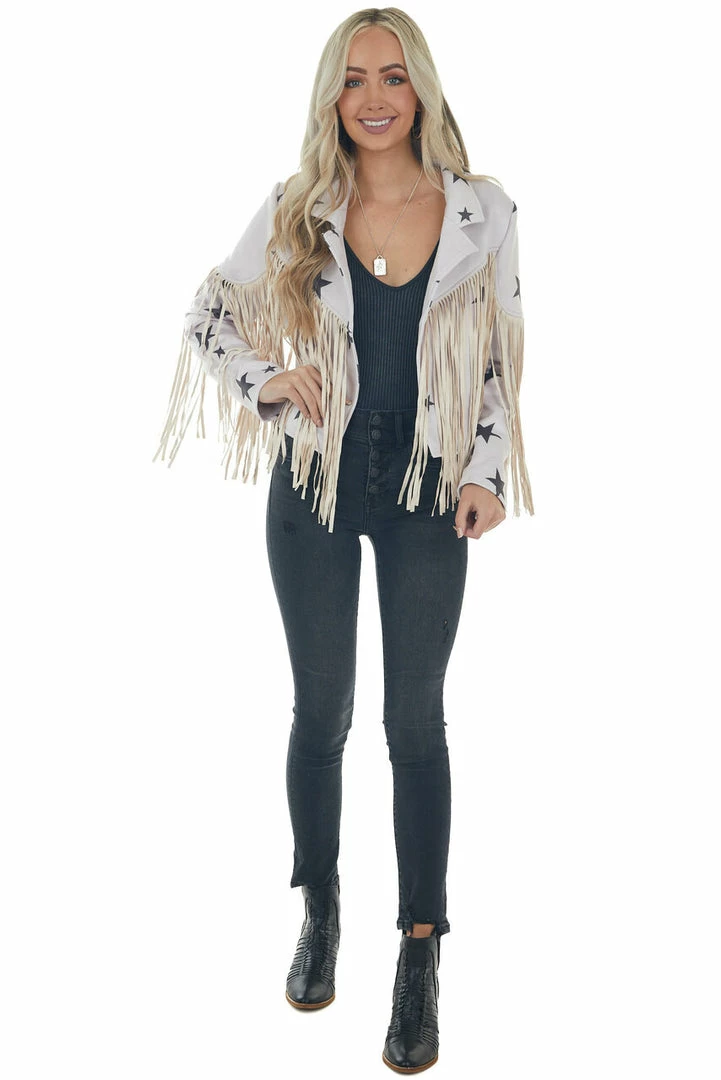 - Pastel Mauve and Black Star Faux Suede Jacket