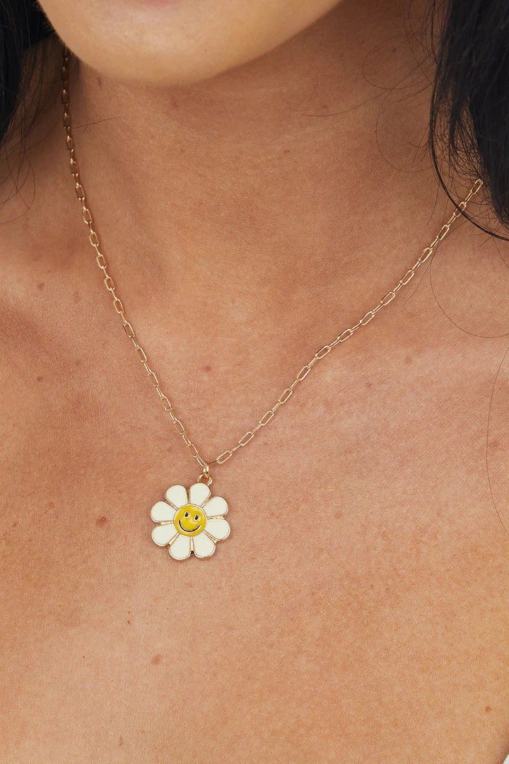 - Gold Daisy Smiley Mama and Mini Necklace Set