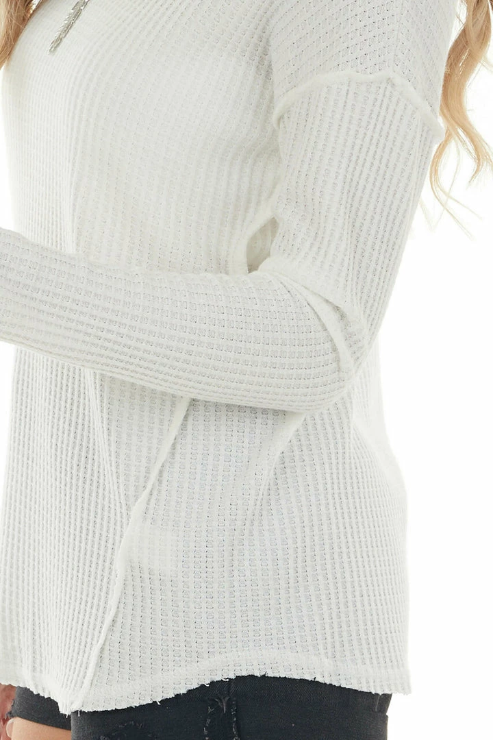- Ivory Waffle Knit Raw Hem Long Sleeve Top