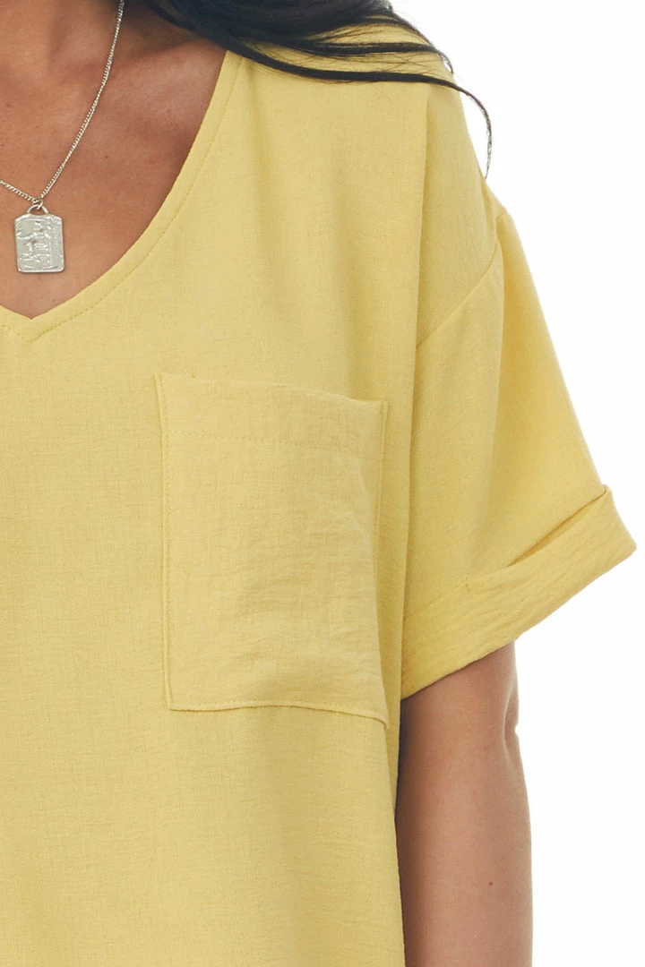 - Tuscan Sun V Neck Cuffed Short Sleeve Woven Top