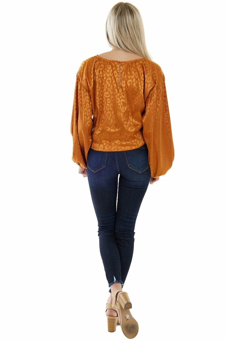 - Caramel Leopard Long Sleeve Top with Front Tie