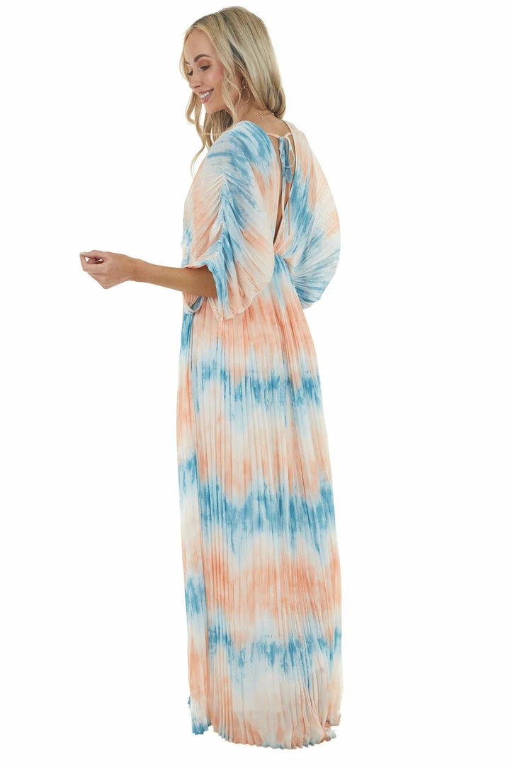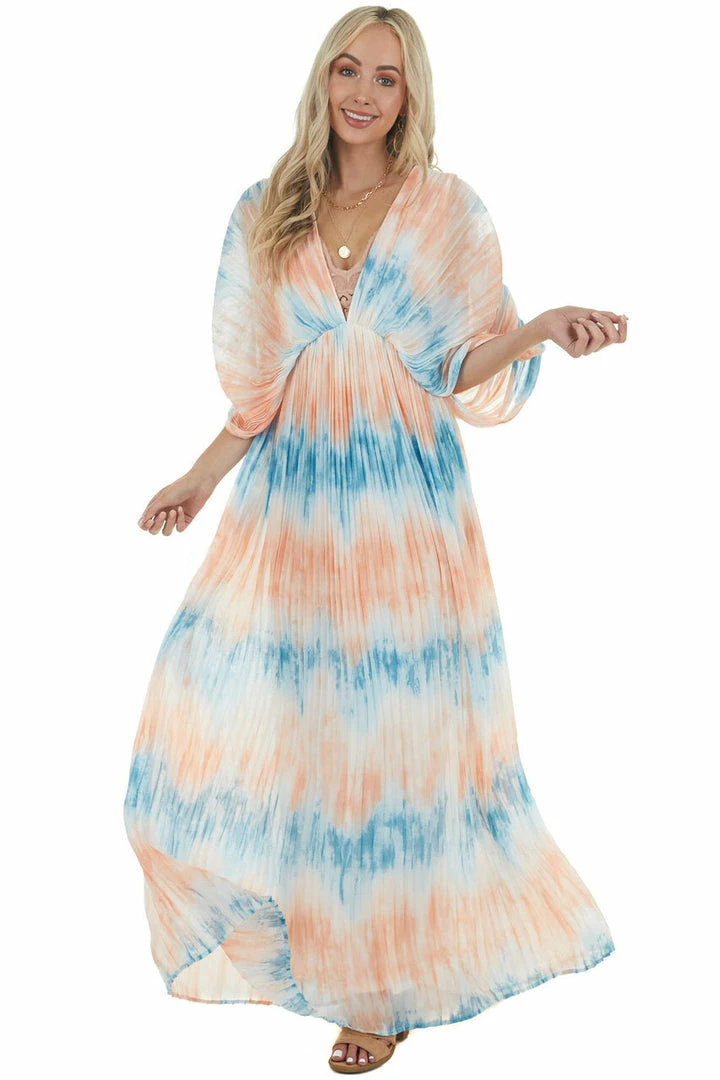 - Cobalt and Salmon Tie Dye Pleated Woven Maxi Dress