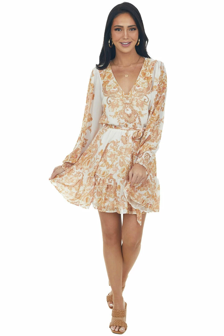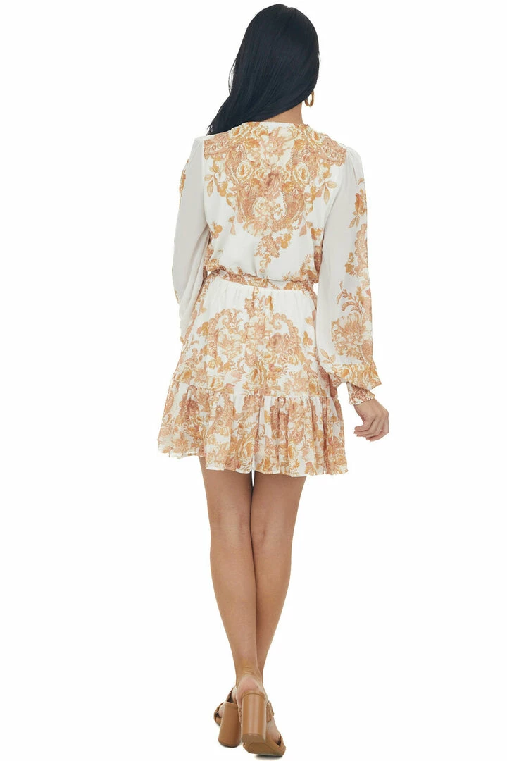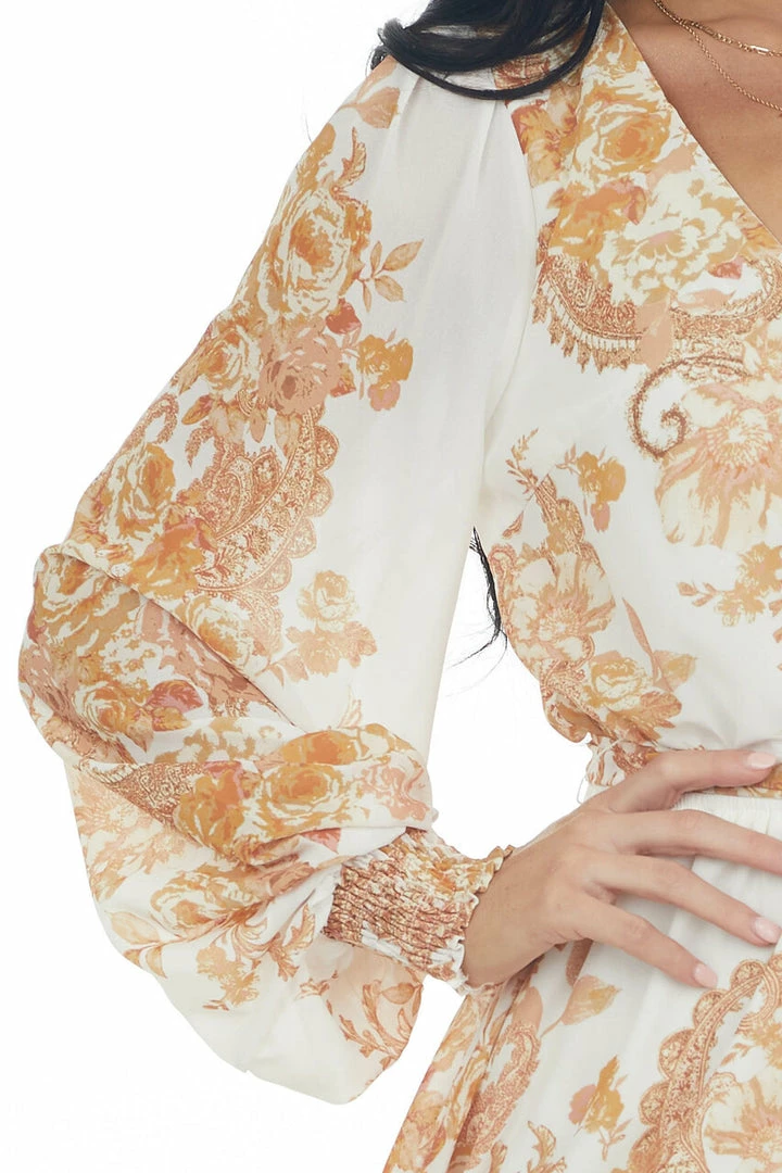 - Ivory Floral Print Long Sleeve Blouson Dress