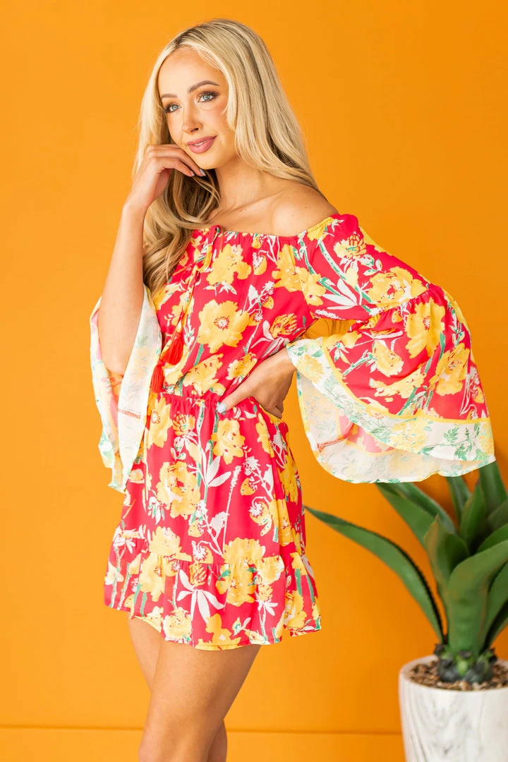 - Floral print in shades of Amber, Periwinkle, Jade and Vanilla