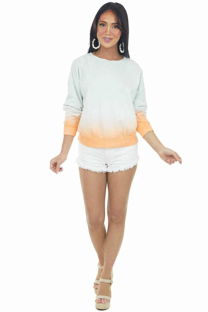 - Mint and Orange Ombre Ribbed Trim Sweatshirt