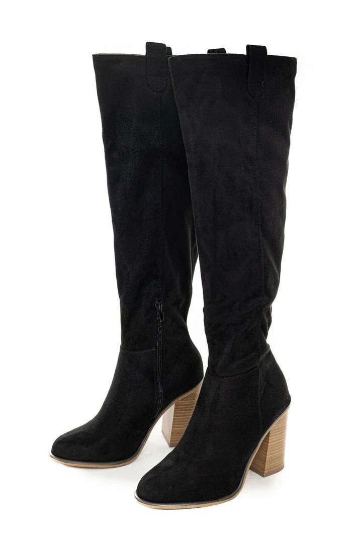 - Black Suede Block Heel Knee High Boots