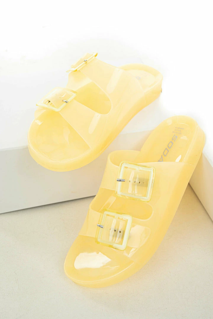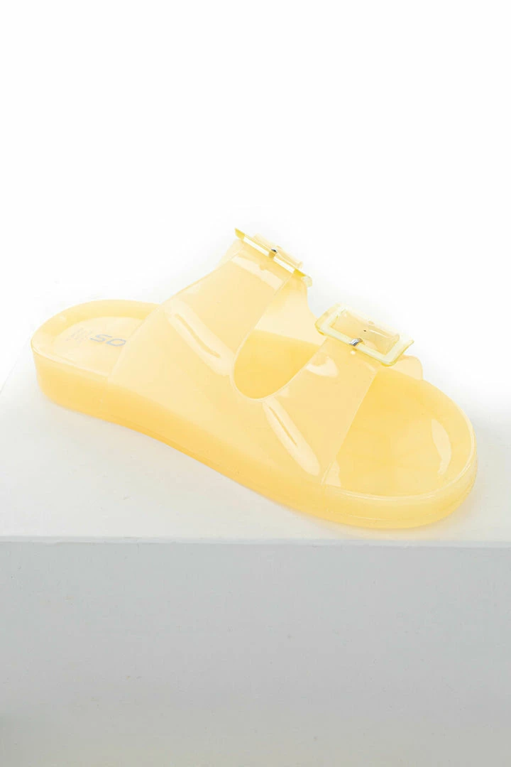 - Buttercream Double Buckle Jelly Slip On Sandal