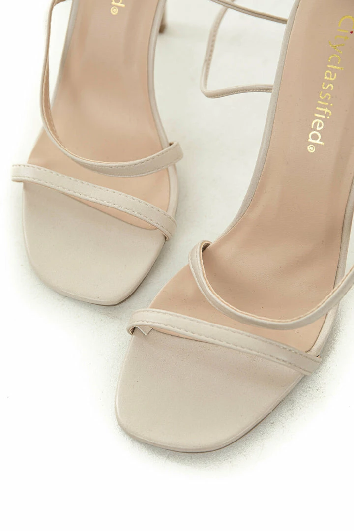 - Champagne Strappy Ankle Wrap Square Toe Heels