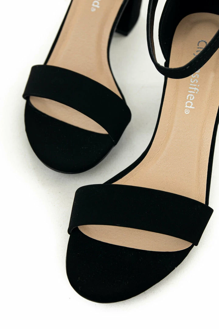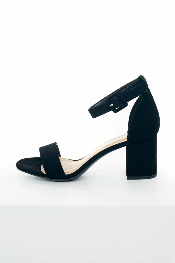 - Black Nubuck Ankle Strap Open Toed Block Heels