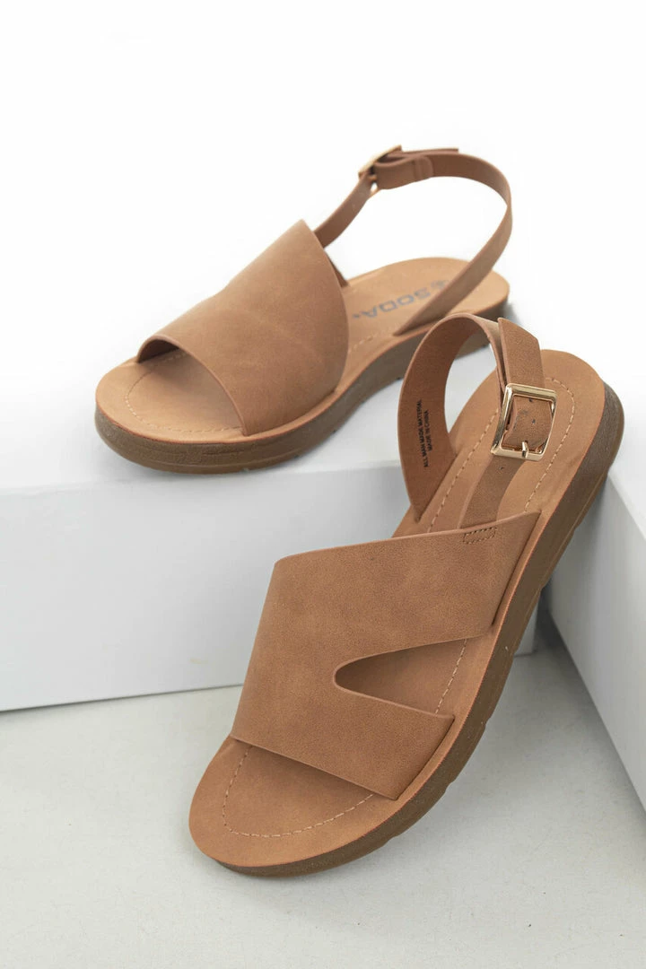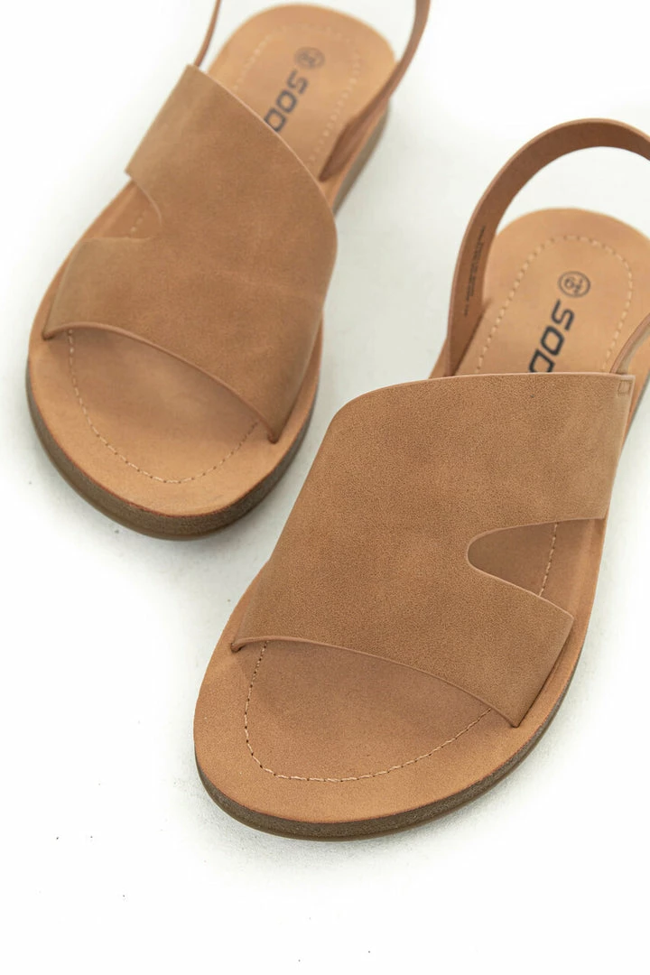 - Cognac Open Toe Split Strap Sling Back Sandals
