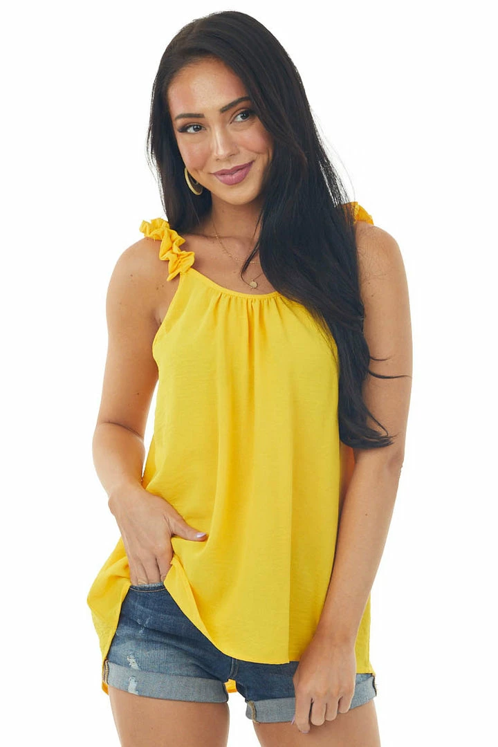 - Bright Amber Elastic Ruffle Strap Woven Tank Top