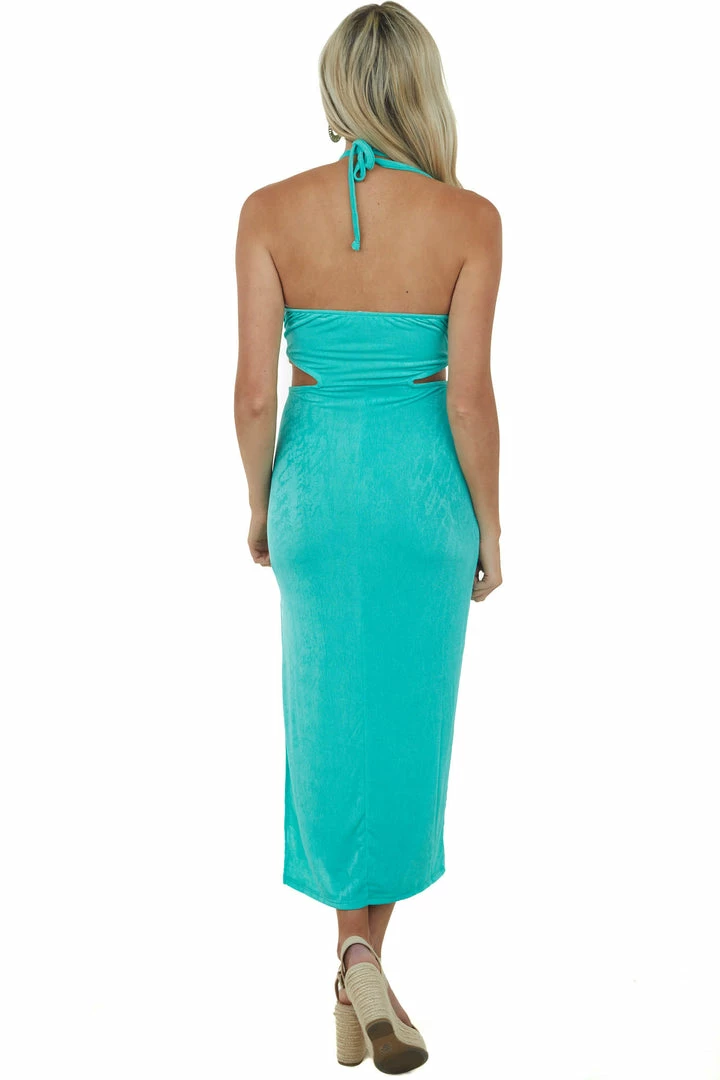 - Kelly Green Knot Twist Halter Neck Midi Dress