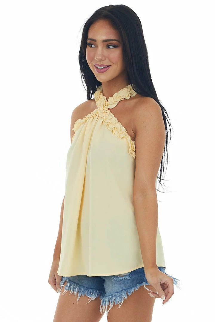 - Pastel Orange Frill Trim Halter Neck Woven Top