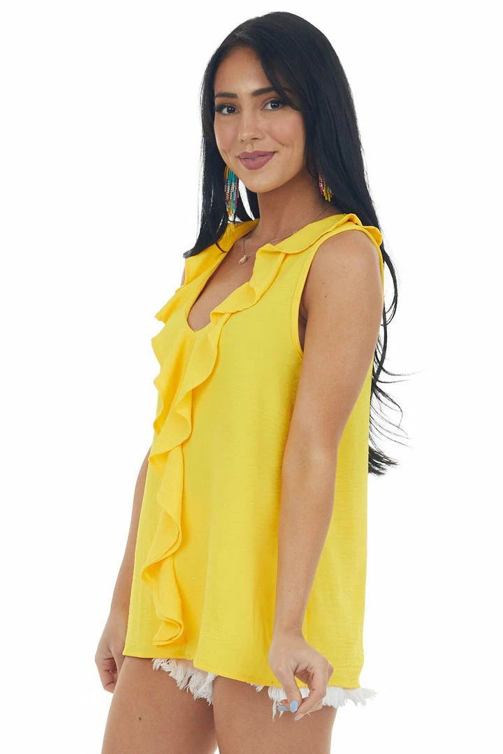 - Marigold Ruffle Sleeveless Crinkle Blouse