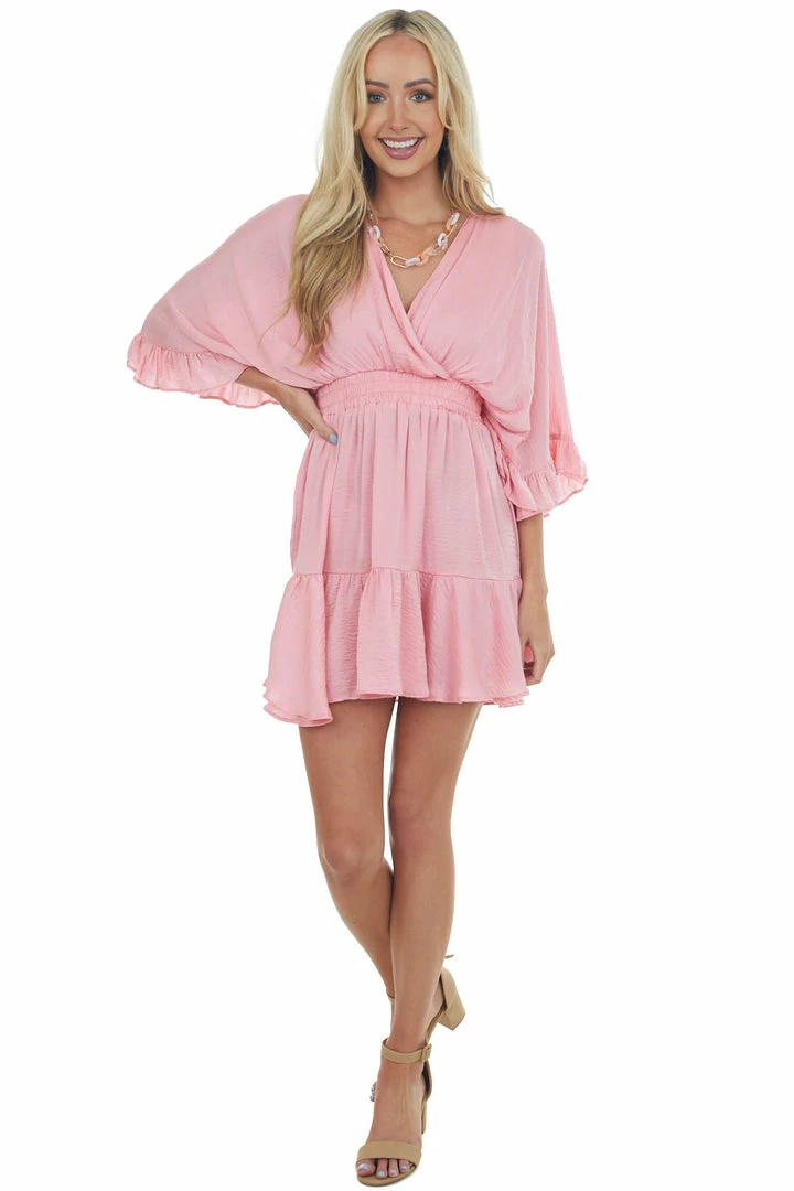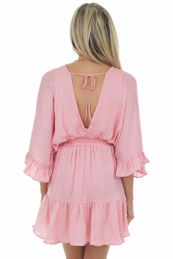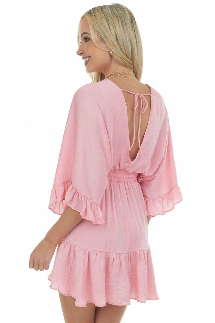 - Punch Kimono Sleeve Ruffle Silky Mini Dress