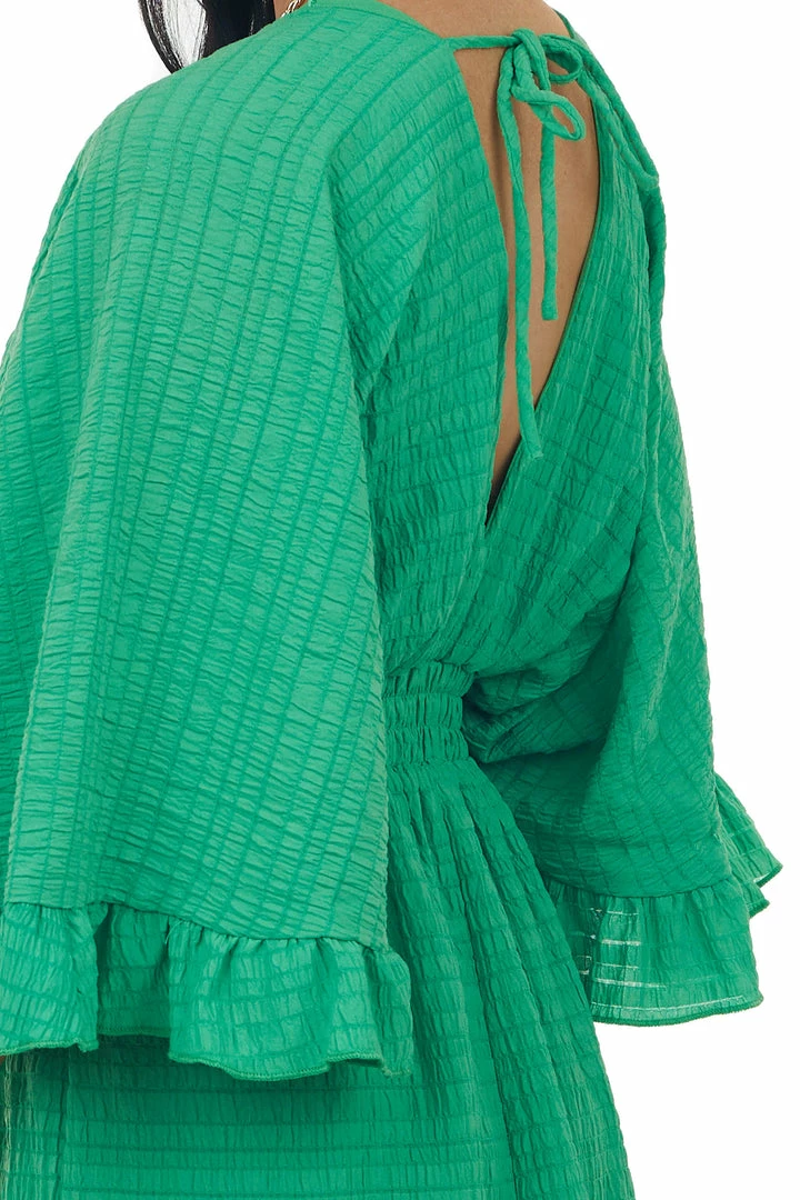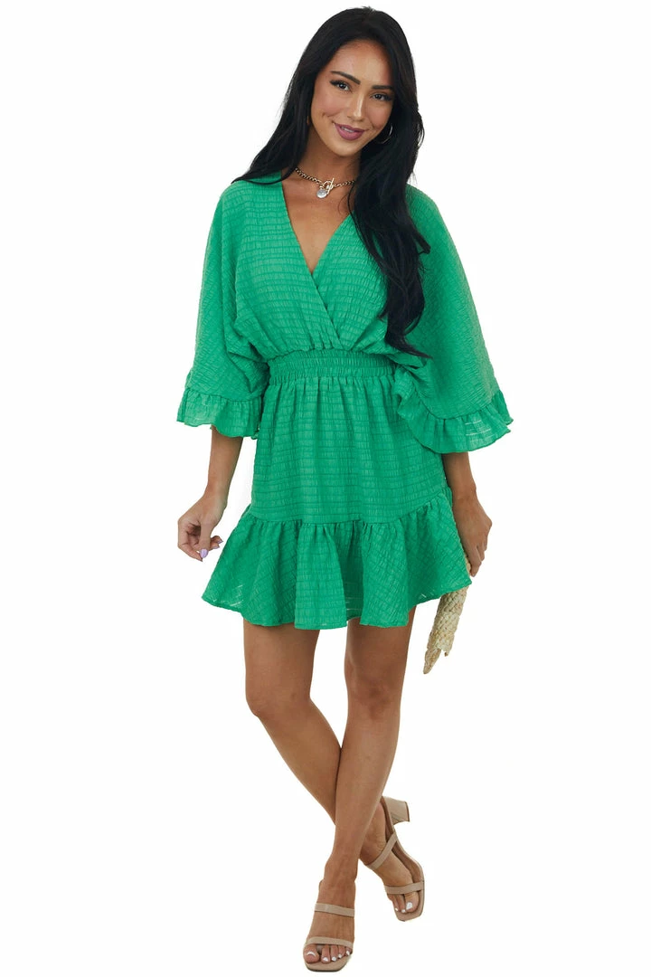 - Kelly Green Surplice Kimono Sleeve Mini Dress