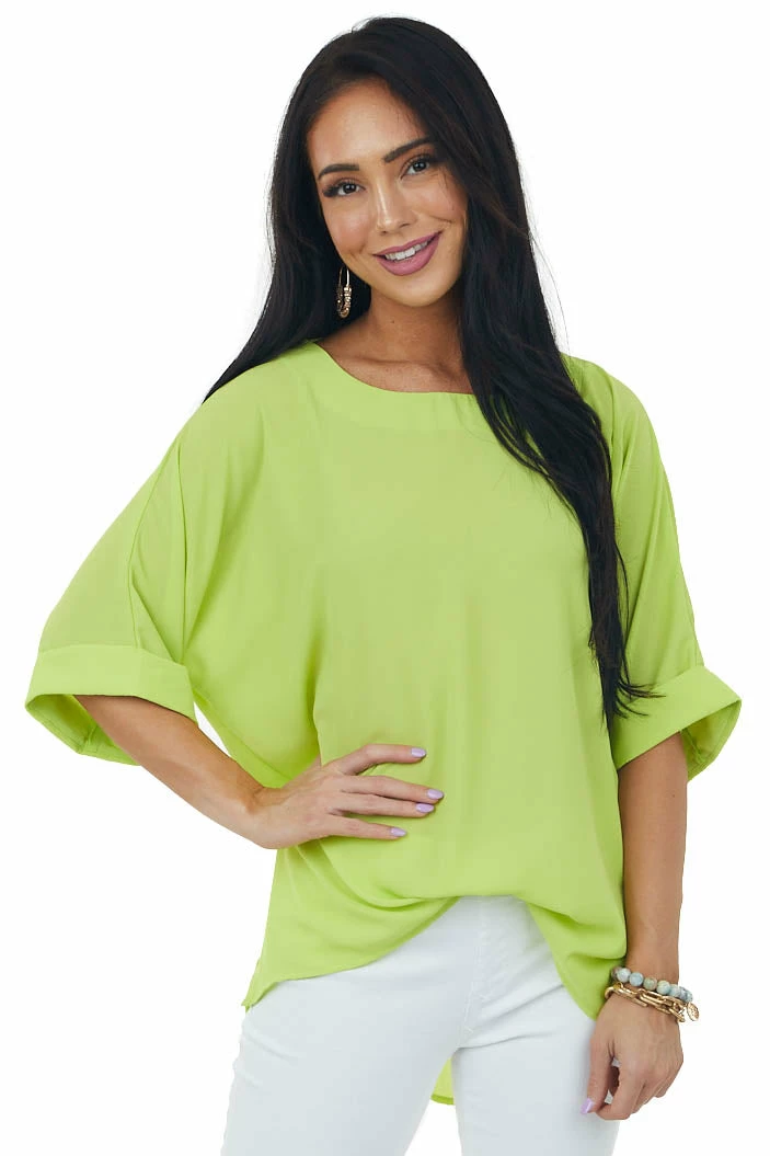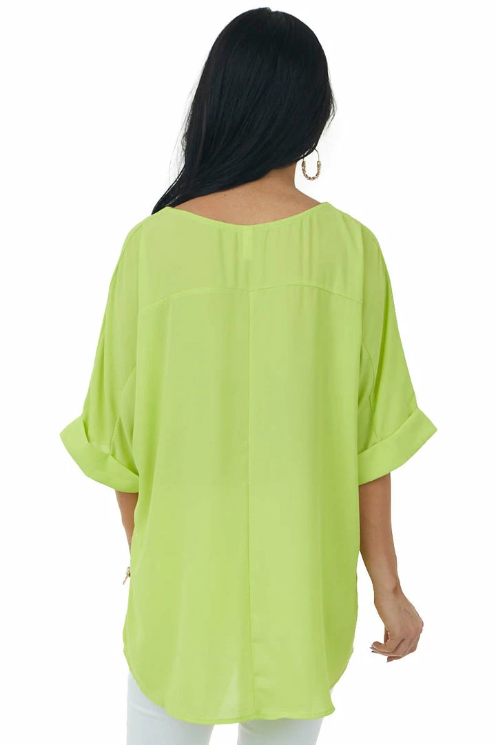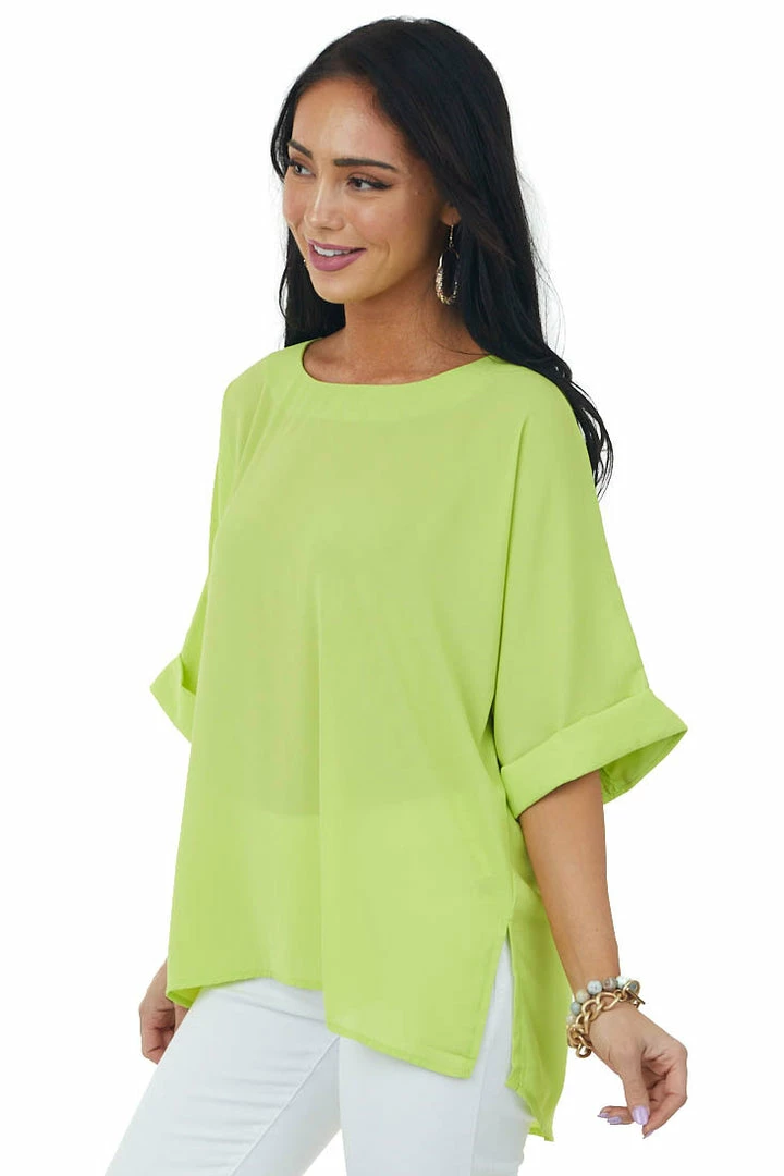 - Lime Green Half Cuffed Sleeve Side Slit Blouse