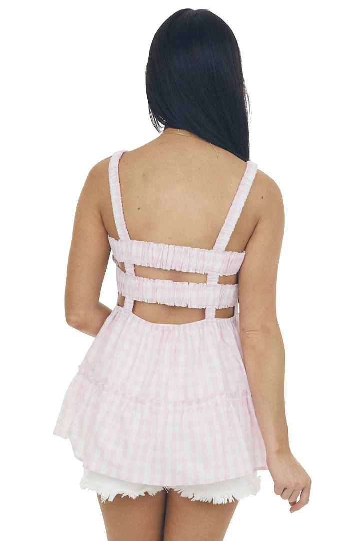 - Bubblegum Pink Gingham Smocked Tiered Top