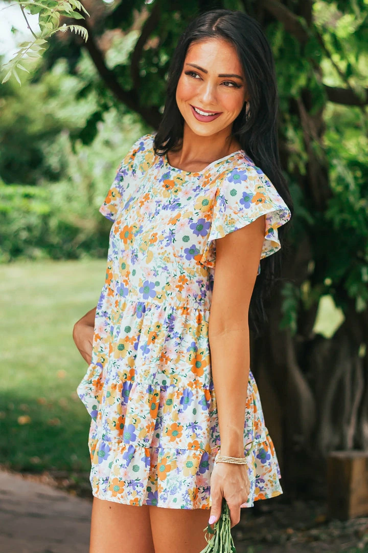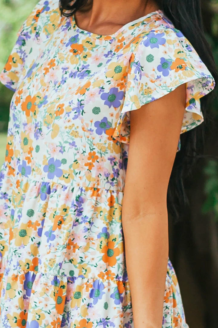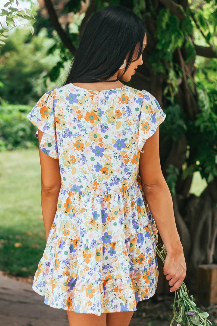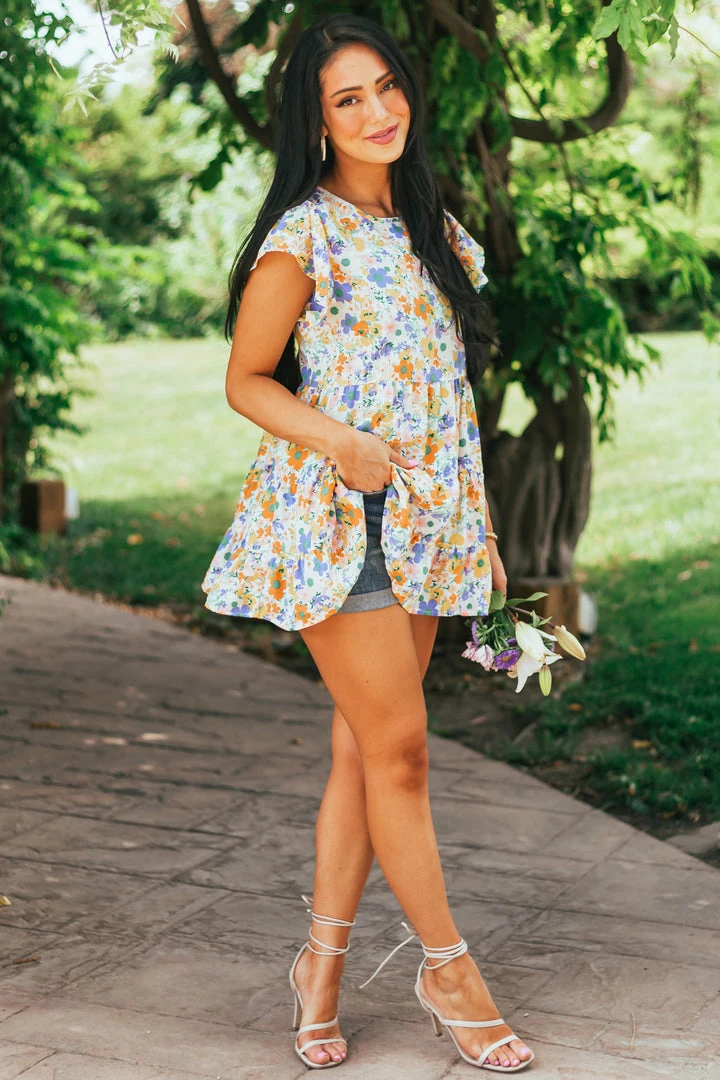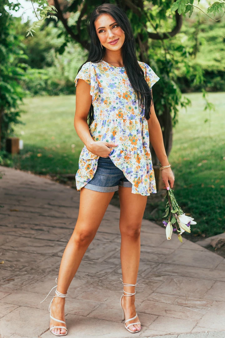 - Ivory Multicolored Floral Print Drop Waist Blouse