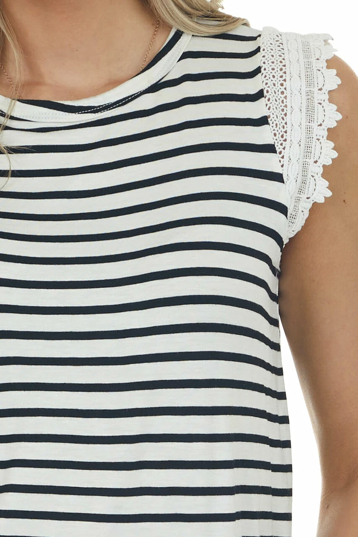 - Black and Ivory Striped Lace Cap Sleeve Top
