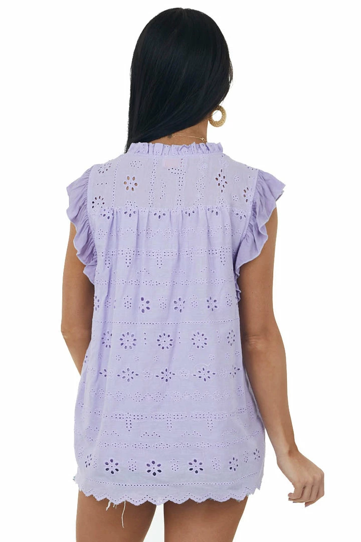 - Lavender Short Sleeve Eyelet Tassel Detail Top